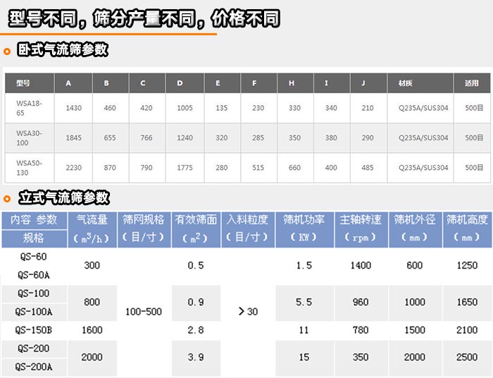 氣流篩分機(jī)有兩種類(lèi)型,分別是臥式氣流篩立式氣流篩